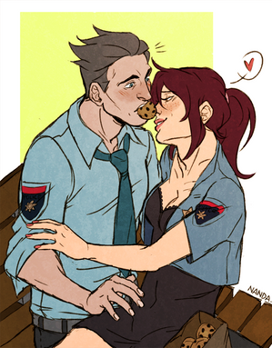 hey, can make me a picture of my OC Criminal case with Jones embraced, please ?.