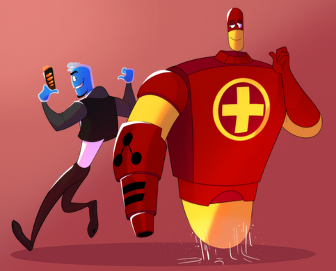 haha, yeah. He was created to look like a machine. Maybe his head is just his body and the rest would be a part manipulated but who knows.. haha. x'))
