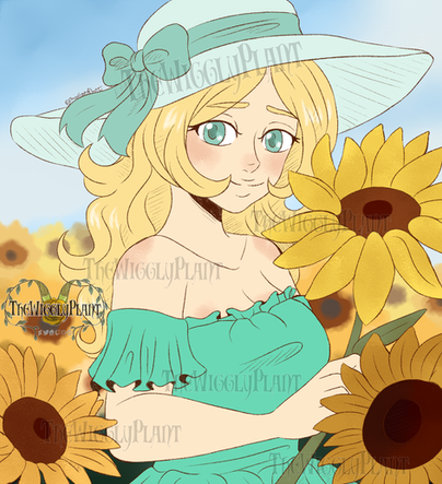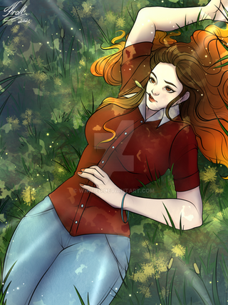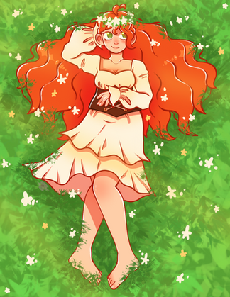 #blonde #blondegirl #blondehair #digitalart #digitaldrawing #digitalillustration #dress #female #flowers #freckles #grass #helia #purpleeyes #reddress #redflowers #tanned #art #straplessdress