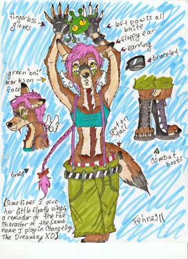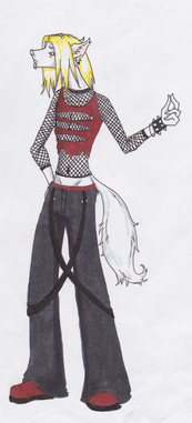 Actually I sketched her head and torso last nite and finished it during Economics and Amer. Government classes today. Which explains the icky fur colouring -- I was colouring it with the lights out. heh.