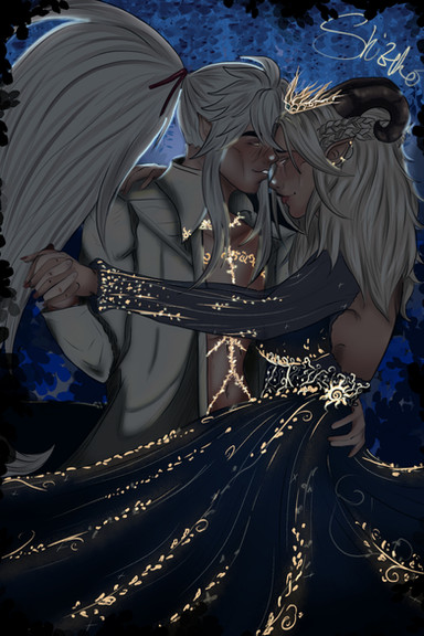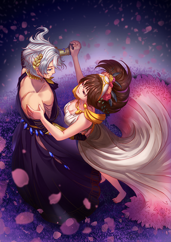 #anime #animeart #animecouple #animeoc #digitalart #owncharacter #purplehair #whitehair #digitalbackground #animedancing #animebalroom #romanticscence #digitaldrawing #digitalpainting #bnhafancharacter #miruko_usagiyama