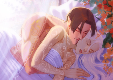 Drew me and my bf's ocs together. It started off as a doodle, but then I colored it and added a backgroundRelated content