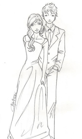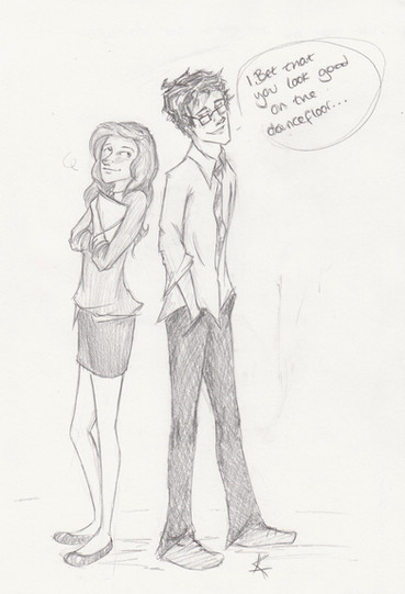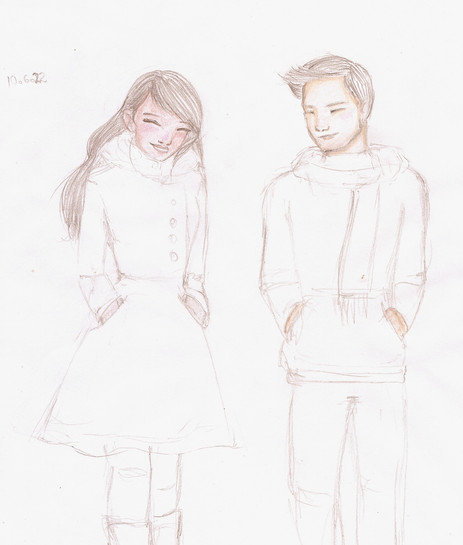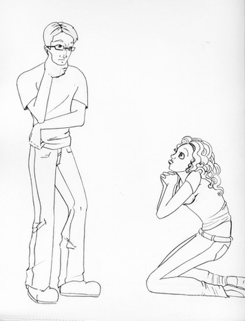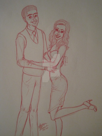 Hooray for dreams! I had a dream with one of my best friends with whom I do Japanese things with and we were going to his parent's house (whom I've never met nor do I know what their house looks like) and the home looked like one of the newer nicer houses I encountered in Japan complete with a Japanese name plate in the front which is weird because my friend is American and doesn't have anywhere near a Japanese name. But we went inside and suddenly we were in a nice restaurant that his father owned. The house was a fine dining restaurant. Suddenly I noticed my friend was wearing a suit and I was in nicer clothes too. We greeting his dad and my friend lead the way to the second floor where our table was. Then either the dream changed or I forgot what happened next. This is a scene from the dream. I thought it was nice and sweet.Drawn with .07 lead mechanical pencil