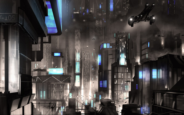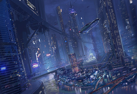 I've seen a fair number of sci-fi cityscapes and most of them are the stereotypical shiny cities that look likeΒ they were built less than a year before.Β Your city on the other hand is gritty with all kinds on infrastructure overlapping.Β It gives it the feeling like its been there for a long lime, like people have been living, and working there.Β That said the image does look a bit like a collage with different images collidingΒ into each other in an unrealistic manner, but the overall effect still works on me.Β I definitely support you doing more paintings like this.Β Β