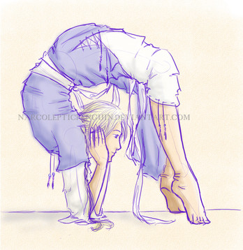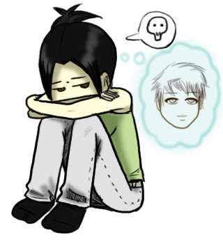 At first it was suppose to look as if he was being strangled by his scarf, but I changed my mind after taking another look at his expression.