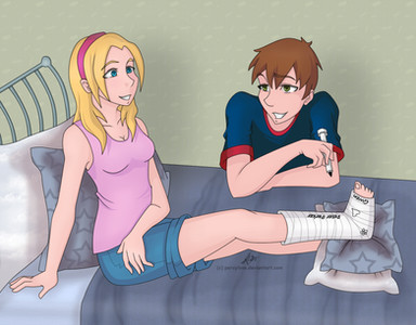 He asked for a picture of Jessica Drew and Peter Parker from Ultimate Spider-Man in a hurt/comfortable pose.