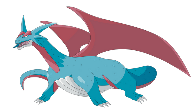 It has basically the same stats as its pre-evolution Salamence (but really faster), but has something particular : It's immunised against Electric attacks and can use Electric attacks!!