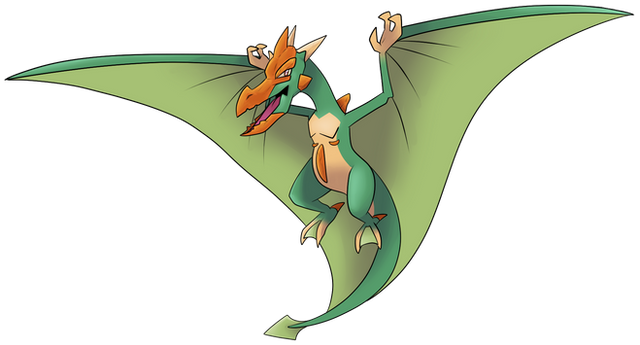 Dex : This dragon is faster than Pidgeot since it uses the energy stocked inside itself and it's four powerful wings to fly this quick!!
