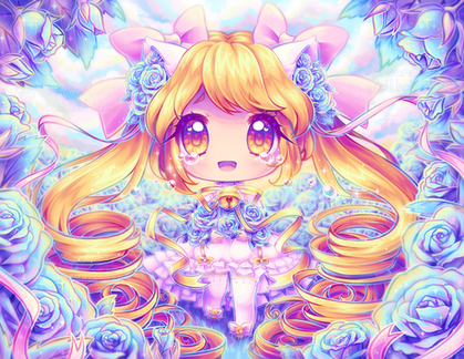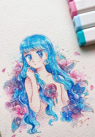 These bright colors, and the way they bleed into each other (especially the blue+pink+purple of her hair!) are an absolute treat to the eyes! How beautiful!