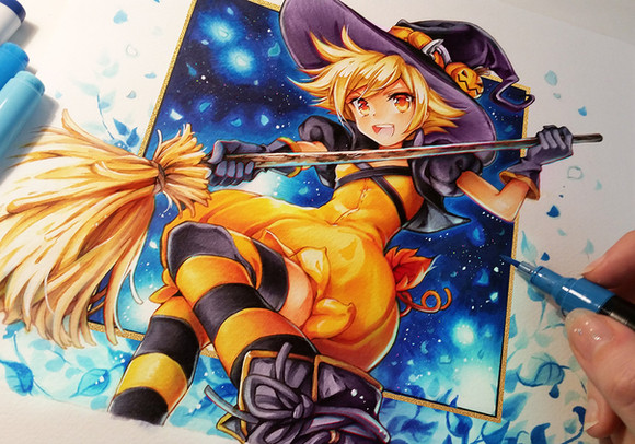 for the solid black areas like the neck ribbon do you use a paintbrush or a marker?