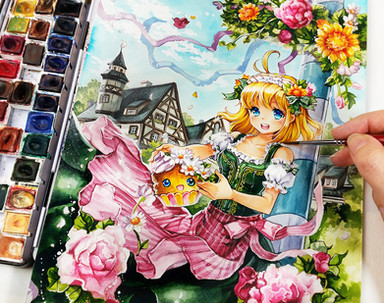 The colors are intense and catchy.....Are you using Gouache or transparent watercolors on this piece???