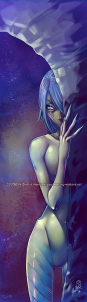*le gasp* I thought I commented on this a while back! I have to tell you, I recieved the "Mangaka America" book today and saw your work and swore it looked familiar, you're shading is beautiful in all of the pieces you do but this one is probably my favorite. I love Shayla Shayla, and the blue against her tan skin and red hair is a very nice contrast. And rough or smooth you've got some great skills when it comes to shading and color, the only thing I really see "wrong" with the picture has already been addressed in previous comments. And that would be her arm, but it doesn't look too off and everything else in the image is more than enough to make up for it. Great rendtion of a character you aren't familiar with as well. Sorry for the long comment x.x;