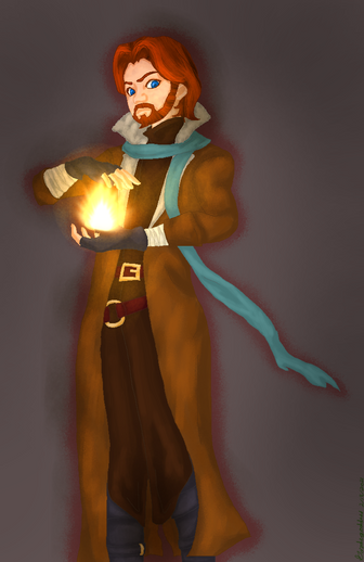 But I LOVE his coat, coats like that are amazing, and this is no exception! And the lighting from the fire to his hair <33 o-o I also like how you did the lace/his hands