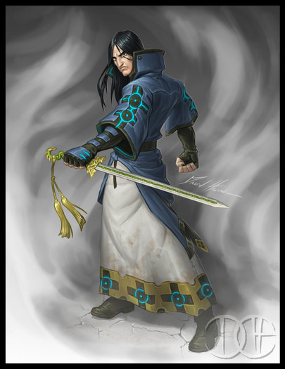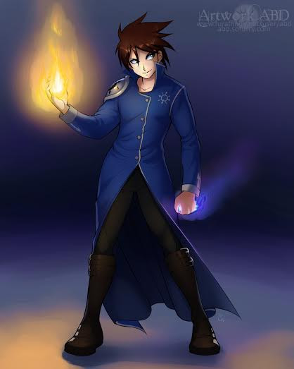 oh man, i love this guy's eyes, and the details on the sword look really good, i like how the sleeves in the jacket turned out and the fire effects look great!~
