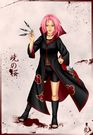 wow! from her cloak it looks like shes a member of the Akatsuki from the anime Naruto. am i the only one seeing this?