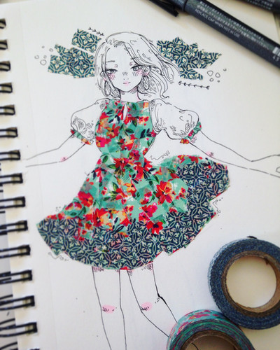 #anime #blue #change #changing #complementary #constant #doodle #dress #floral #frame #girl #identity #ink #manga #orange #persona #reflection #sandals #sundress #woman #individualization #self