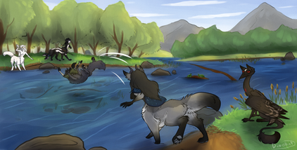 Inumbra's deer is not interested in joining them in the lake. Boo.