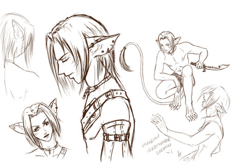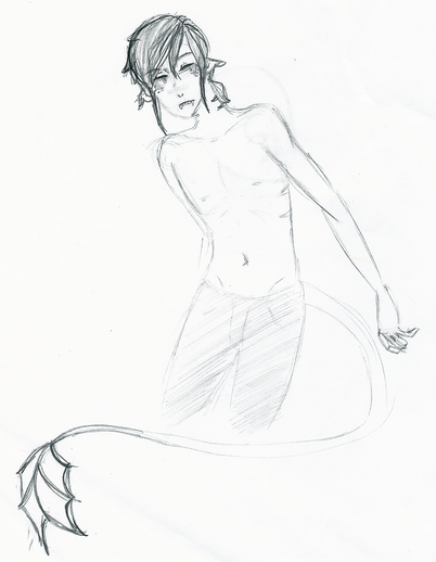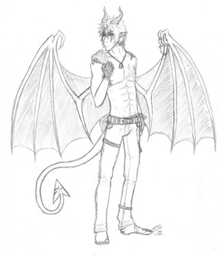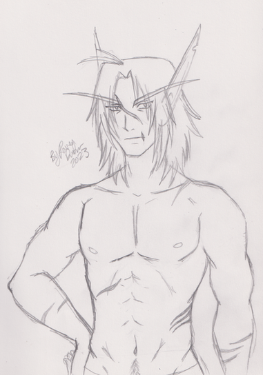 I did a redo sketch of one of my very old OCs, Red. But I didn't draw him with his shirt on because I wanted to try out drawing bodies from that angle.Old picture: natattack33.deviantart.com/artβ¦