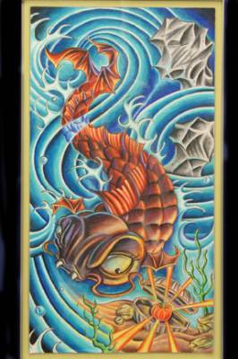 based on an aztec statue...this is on a fellow artist...he wanted something to represent his heritage....and this is it.Related content