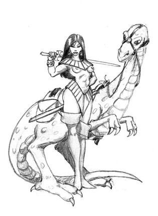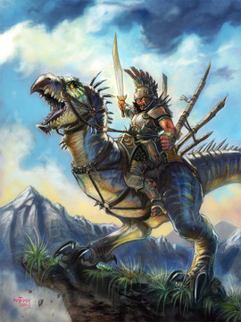 So awesome! The Dilophosaurus is beautiful, and the "barbarian" armor looks almost . . . regal. I hope one day my pencil drawings can match this level of realism. Thanks so much for posting it. This is definitely going in my favorites list!