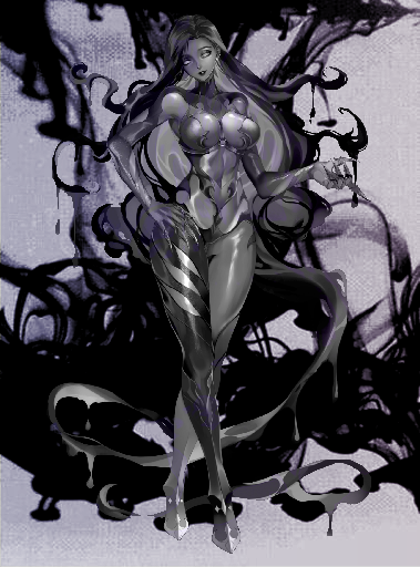 This concept for this character was though of by me and the design was done byI wanted a villain who was a contrast to the hero team I had made: fav.me/dcfh9q9 . Somehow I came up with an idea for a villain character who's body was made up of ink. I wanted something to be the opposite of colorful but still have a unique appearance.