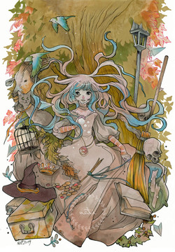 #painting #watercolor #natiart #natiartcom #animemanga #brushes #fantasy #fantasycreature #inprogress #leavesautumn #leavesleaf #nature #nymph #redhair #redhead