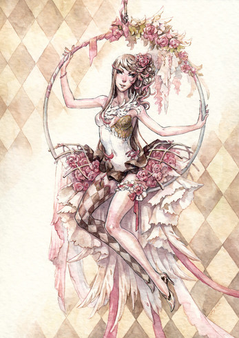 This is such a beautiful and well-done painting. You have so much control with the ink splashes and I like the colour scheme with pink and sepia. I'll keep my eye out for your graphic novel in the future