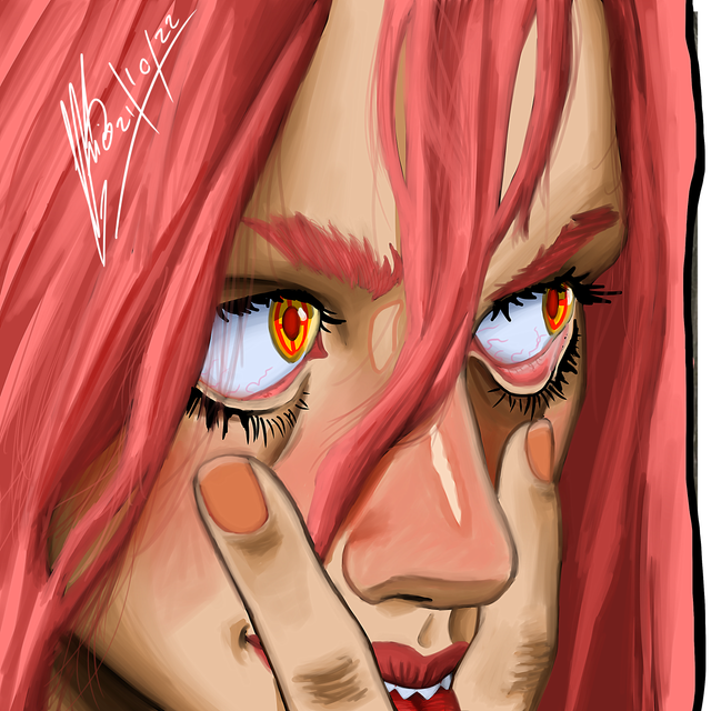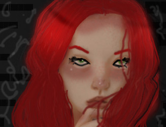 #blackbackground #girlfemale #handdrawn #readhair #redhead #tongueout #tonguestickingout #yelloweyes #pinkskin #pinkskinnedgirl