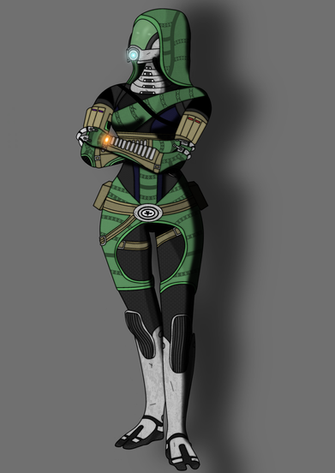 I don't really like seeing her in that dress, actually. The shoes make it look so ugly. Accessorize, accessorize, accessorize! My favourite is that tight thing Dr. Chakwas also has on. Vega is huge, though. Who could beat that gorilla of a man? Certainly not Shepard or Ashley with their thin little arms. Ugh.