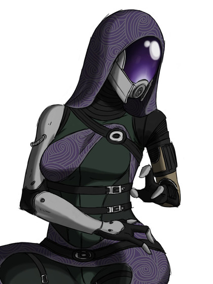 D'awww I LOVE Tali! What made me look twice at this drawing was the smudge on her mask. Then I noticed the wrench. Loved that little detail! I know you probably had a lot of work, but I'd like to see a more detailed background. If you didn't say it was a car I would have never guessed :/ Anyway, it's lovely and, did I mention I love Tali?
