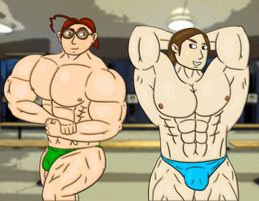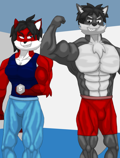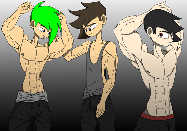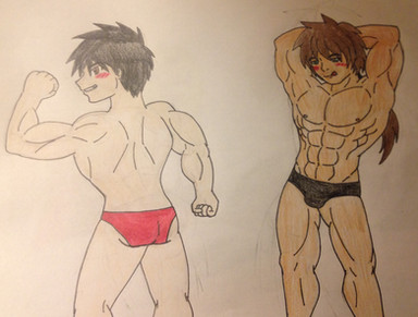 "Here we have Arthur "Lithius" Mordell and Darius Mytozul, inside a personal home gym as they have a pose off to see how they have gone after a workout session. Darius though being a more stronger person, he kinda shows off more and is more accepting to his body. While Lithius is more or less more shyee towards exposing his body as he rarely does so. However the two have a bit of a friendly contest against each other."This was from a Depraveddefense request stream and I got around to colouring it completely. And i think it looks great there.