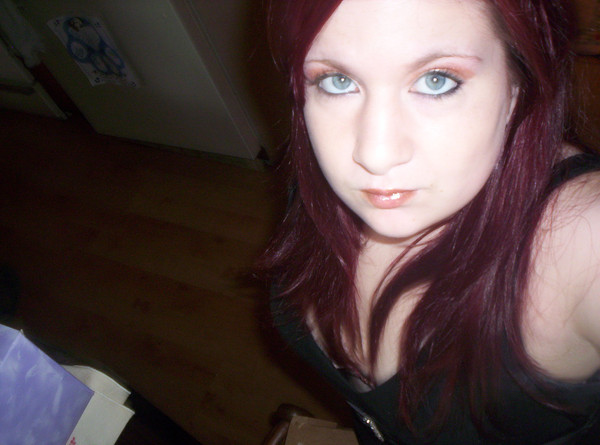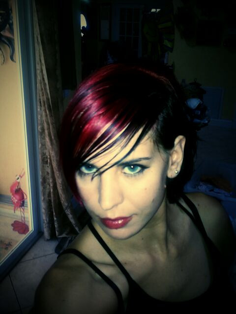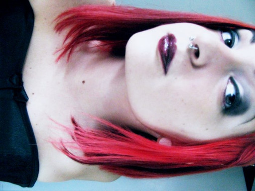 LOL! (not at you, by the way) I totally took a picture JUST LIKE THIS ONE right after I dyed my hair red. Dark lipstick and all. I'm gonna study the color of this one a little more and I'm going to make mine similar, but still different. Then I'm going to post it and call it "Never Again". Then maybe we can put it up for print...who knows. I have an account now...