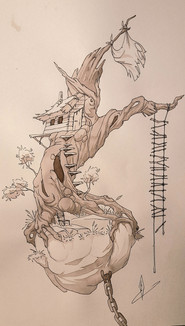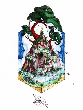 #plants #pen #coloured #traditionalart #coloredpencil #handdrawn #bonsaitree #diorama #fineliner #landscape #lineart #floating_island