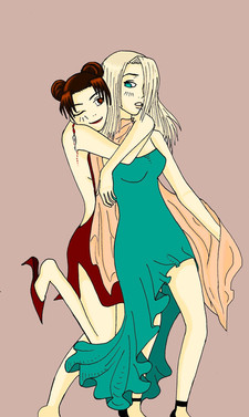 Anyway, this is Yumeko, black hair (my OC), and Sazumi, red/black hair (*TwilightMirror 's OC). They're quite possibly one of my favorite couple out of mine and Kazzy's OCs. <33