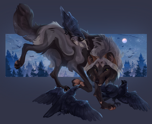 #alar #bird #black #canine #character #dark #dotw #flock #flying #illustration #raven #roleplay #rp #wolf #wolves #naviira