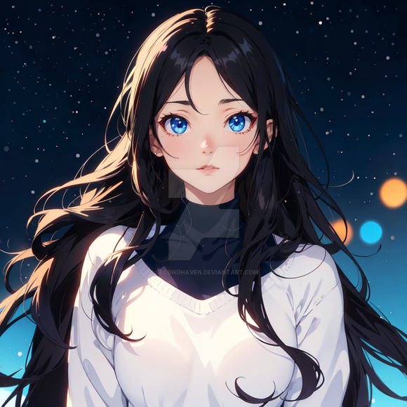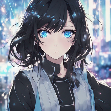 #ai #anime #animegirl #blackhair #blackhairedgirl #blackhairgirl #blue_eyes #blueeyedgirl #blueeyes #magic #sparkles #black_hair #blueeyesgirl #aiart #dreamup