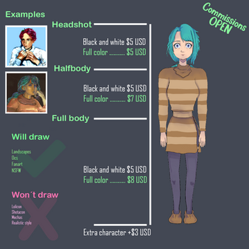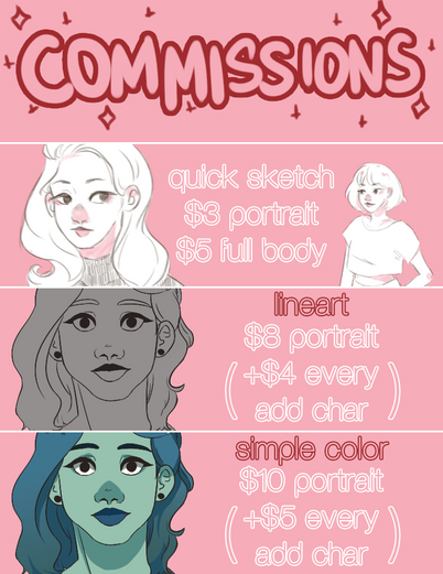 Info on my commissions finally! I’ve decided to stop doing pay what you want commissions since this confused most people!If you’re still not sure what price you could be getting, just send a note x