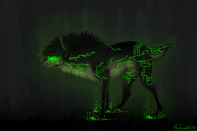 I didn't know that you had a lupe named program...Seems I need to go scouting more oftenXD Anyway, though he does look a little purple, I really like how it adds with the "green" glowing effect that he has ^^ Great job!