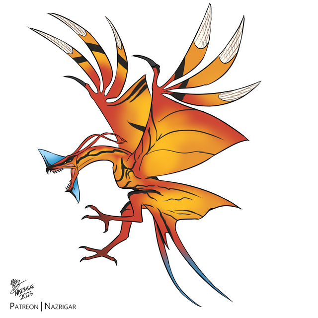 A very fun commission for or ! Essentially a bird of prey with serrated beaks and awesome wing razors!