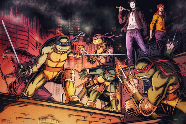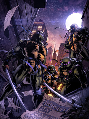 More fun with turtles, trying out new techniques and what not, figuring out what works and what doesn't. Fun, fun, fun. Pencilled, inked, and then colored in photoshop.Related content