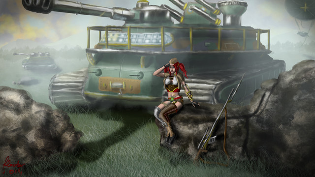 MY GAWD THAT IS AWSOME!!!!!!!!!! THIS GAME SHOULD BE REMADE OR SEQUEL ON THE NINTENDO 3DS , THE GAME HAS SO MUCH THAT IS 3D ISNT IT OBVIOUS HOW TRIPPY WOULD IT BE?!?!!? MAYBE YOU CAN WORK WITH NINTENDO LOL KOZ YOUR ART LOOKS TANK MAN XD SPEAKING OF TANKS SHES HOLDING ONE AHAHHA LOL! EPIC THIS IS OVER INFINITE WIN : D