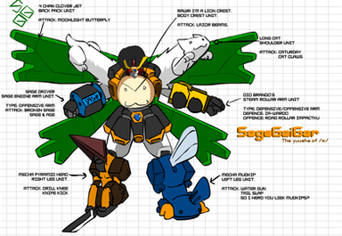 a 4chan /m/ original mecha design, which started off as a Ms-paint draw thread, turns out to a epic collab original mecha design by everyone in /m/Related content