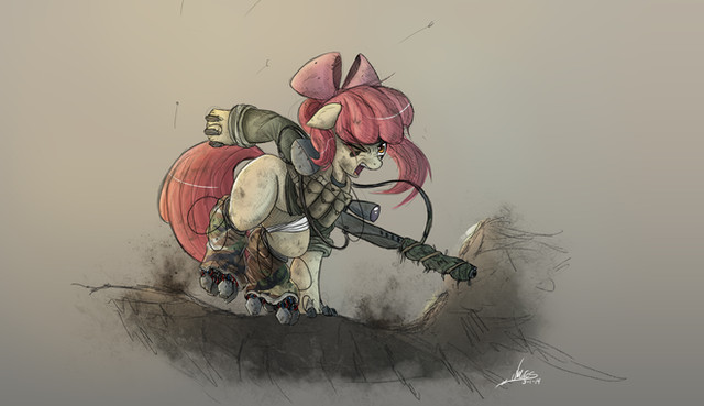 #cyborg #gun #rifle #applebloom #fim #fingers #mlp #nightmares #vest #war #ncmares