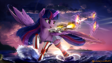 well I will for this review disregard the impression her size makes on this image (its the same as battleship applejack from my last Critique and its still amazing.) someone else pointed out in the comments that you got her mane and tail in the water and how it would actually behave the same way you portrayed it. Other then the amazing detail you put in the lighting, not much to say other then the clear fact you did an amazing job. Only two faults you have are really the same problem; your Russian counterpart already did Twilight as a battleship and that you have portrait alicons in the past a capital ships but other than that small continuity error you've done a fine job and this is a brilliant highlight of your art collection