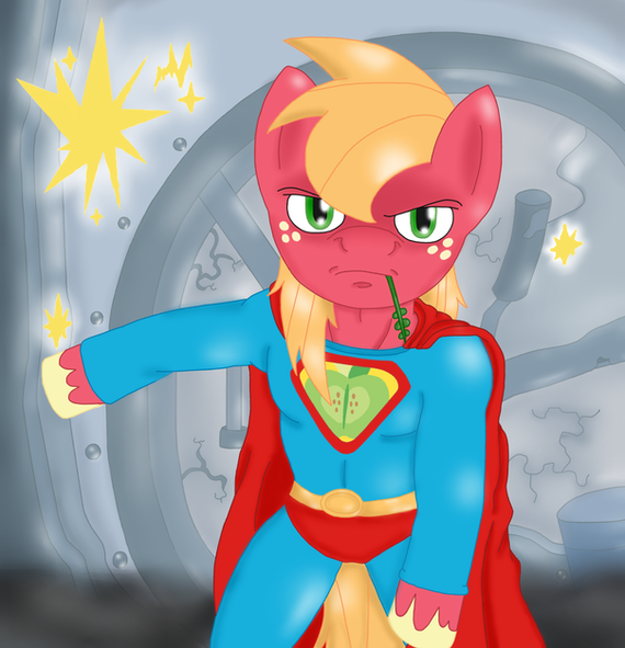 Due to your pictures I started on my own version of Super Mare. If you want to read it check out FIMfiction.net, the story is call Mare of Steel: Super Mare. I also plan on making Apple Bloom Super Filly, you know like how Super Man has Super Girl? How Apple Bloom becomes Super Filly will be my own idea. She gets a blood transfusion (as in she get blood from another pony) from Applejack that given her all of Applejack powers as well as her weakness, only she using them at half power since she born equestrian and Applejack is born Kryptonian.