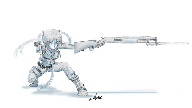 I knew your fascination with young girls and guns had to come from somewhere. So I looked through your old gallery to see if there was any Gunslinger Girl. Here it is.