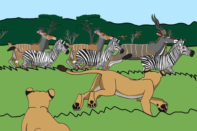 As Sarabi, a sleek and tawny huntress of many years, crouches low in the high grass, body rippling with tension. A few yards off a Zebra raises its head, eyes wide, nose filling with an ominous scent. Sarabi remains frozen, only shifting her eyes to catch a glimpse of her sister, Naanda, who stands still-as-stone to her rightRelated content
