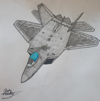 The F-22 Raptor is one of the most sophisticated fighter jet in the world, developped by Lockheed Martin, a American aeronautical company, it cost so much that even the United States Air Force can't brought a large number of themSame thing as the P-51D Mustang [link] First a draft in 0.7mm mechanical pencil on binder sheet, and the final version with ballpoint pen and colored pencil on white paper
