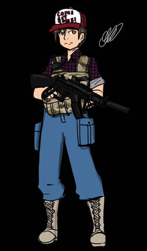 This is a really awesome looking drawing. If this was an airsofter I would definitely want his gear.