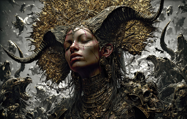 #digitalart #portrait #horror #fantasyart #digitalpainting #beauty #warrior #magic #blood #dark #digital #female #goddess #horns #oracle #realistic #ritual #semi #totem #tribal #warpaint #art